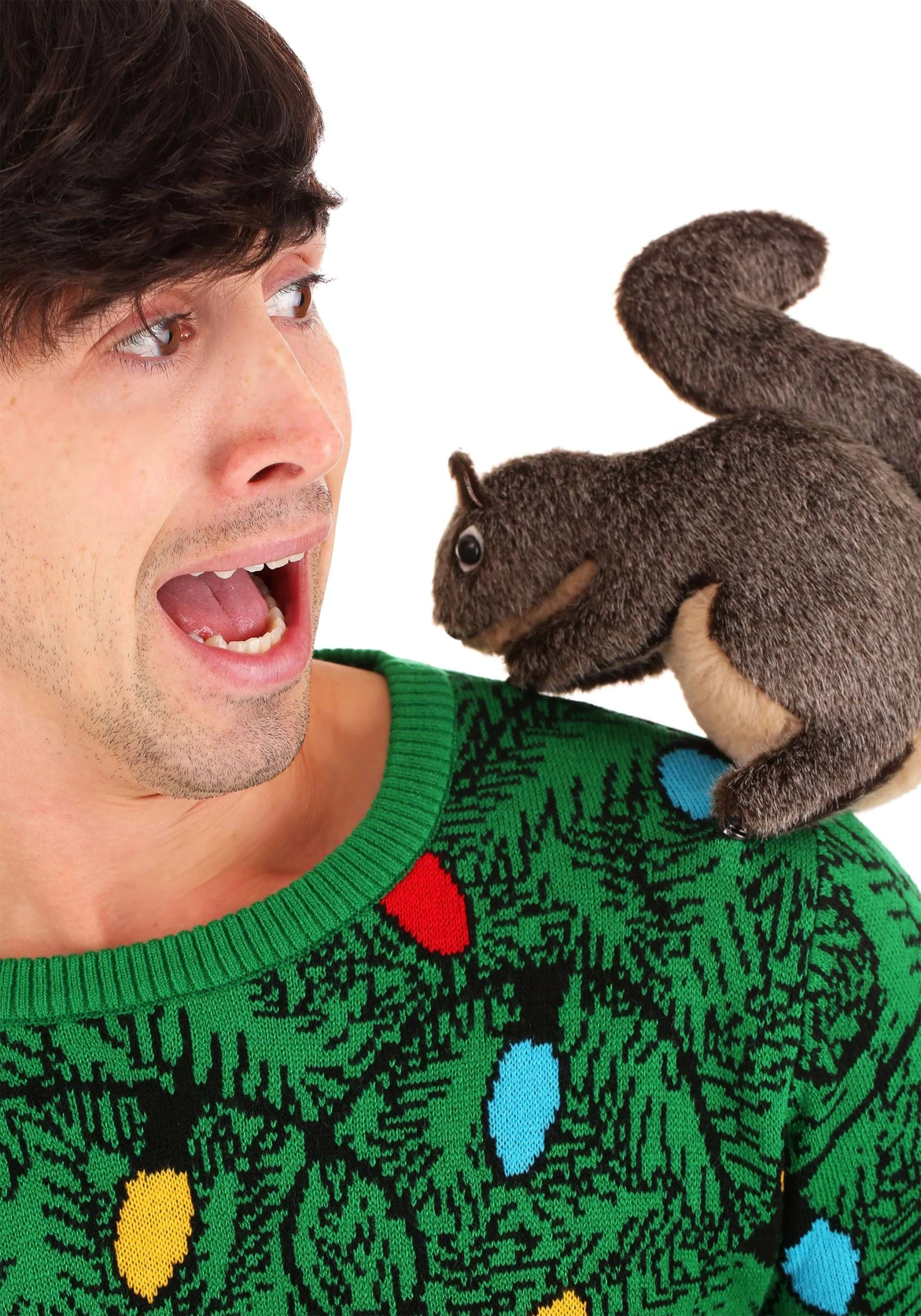This Christmas season, celebrate the fiascos as well the festivities that go along with the holidays. This Made by Us sweater is just the thing! With a bright pattern of retro bulbs and pine branches, your fellow revelers will know exactly what’s going on when they spot the squirrel attached with snap buttons your shoulder. Perfect for decorating the Christmas trees or trading holiday horror stories at an ugly Christmas sweater pub crawl, this sweater might even be more memorable than that time Aunt Marge tipped the tree over during your family’s Christmas cancan line!